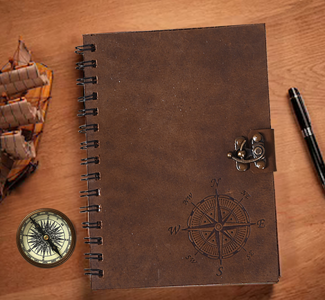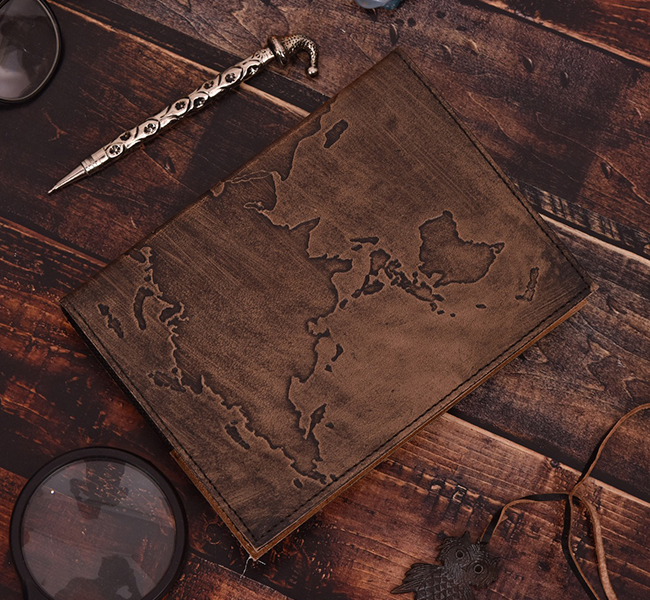 World Map Leather Spine Notebook
