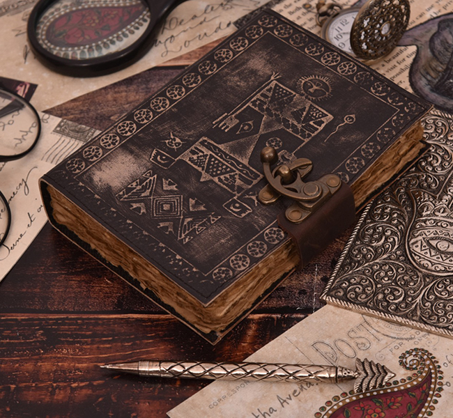 Old Postcard with Paisley Notebook